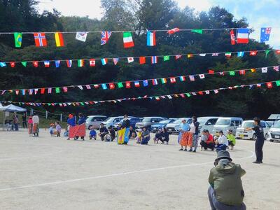 乾杯リレーの参加者みんなで大きな円を作り、恒例の「神郷小唄」と「お米音頭」を躍りました。ちょっと不揃いな部分もありましたが、みんなで踊ったことで盛り上げになりました。