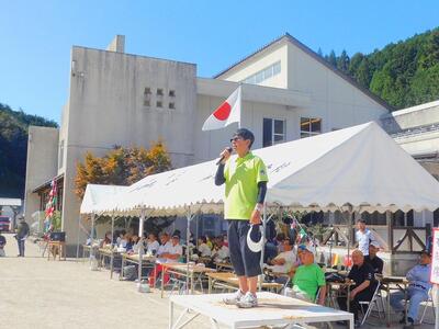 午前中の最後は、池田PTA会長のあいさつで終わりです。お腹が空きました!!