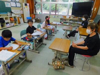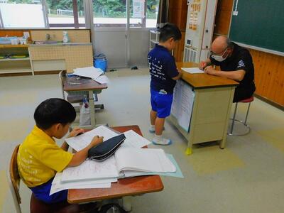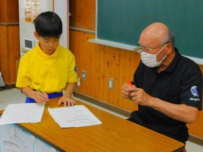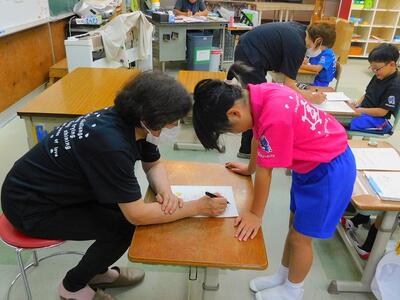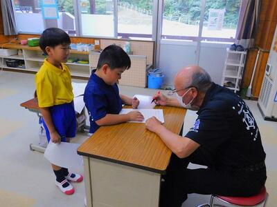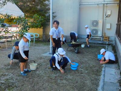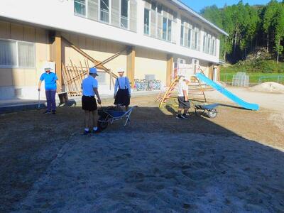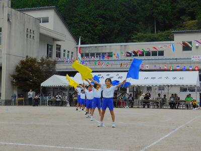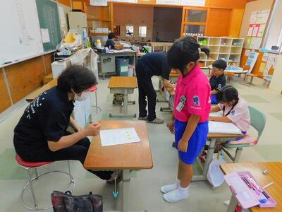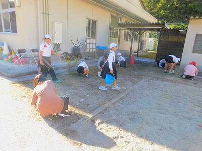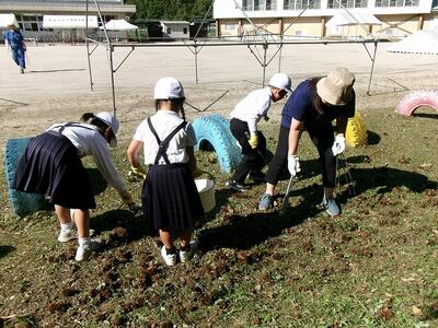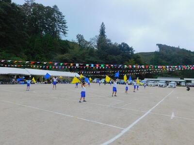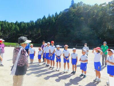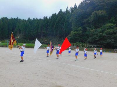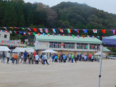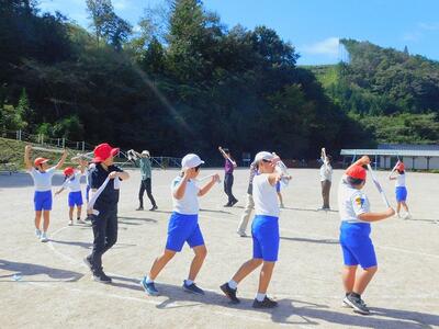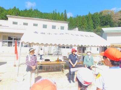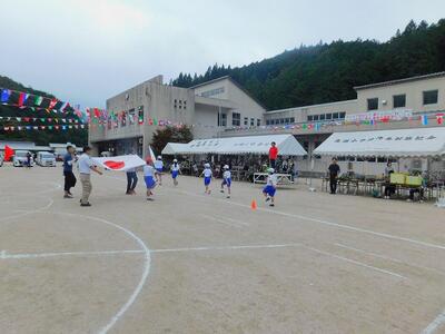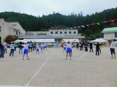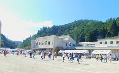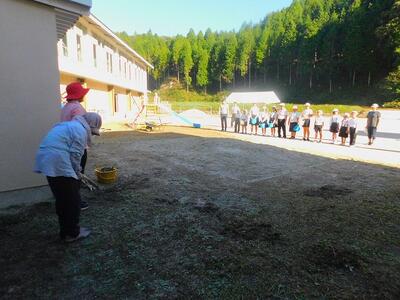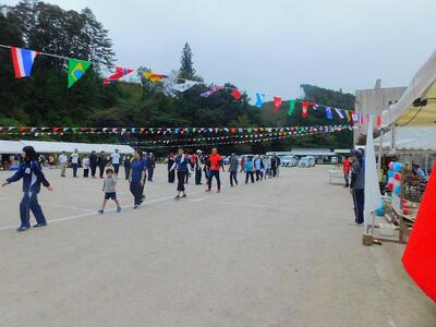 その後、ドローンによる撮影を行いました。児童と教職員、保護者で二重円を作り、その周りを参加者で囲み、空から2パターン撮影してもらいました。これは、閉校記念誌と先日作成した「閉校記念制作の組子」に飾るものです。できあがりが楽しみです。