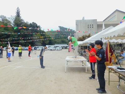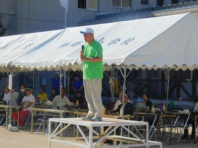 午前中の最後は、池田PTA会長のあいさつで終わりです。お腹が空きました!!