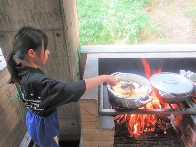 ウォークラリーを終えて、クタクタの子ども達ですが、最後の活動、野外炊事です。これをしなきゃお昼ご飯にありつけません。がんばれ子ども達!