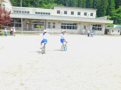 6月18日(水)の業間時間に、一輪車の練習をしました。