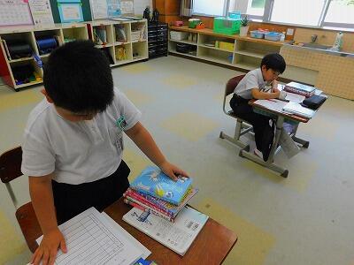 5年生は、合同な図形の学習です。5年生ともなると、書くことも多いし、更に図形の学習なので、ワークシートもあり、結構大変そうでしたが、頑張っていました。
