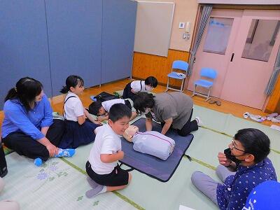 6月27日(金)、授業参観の後、児童、保護者、教職員で「救急法」の勉強会をしました。