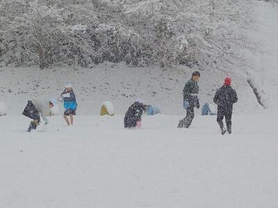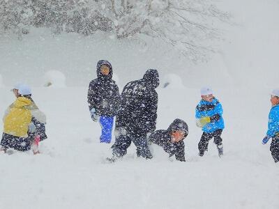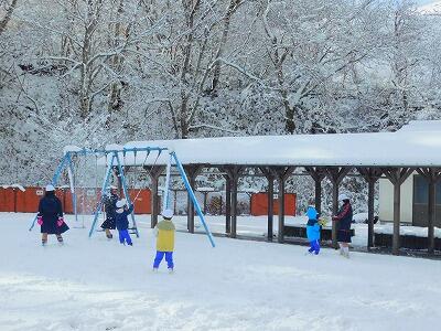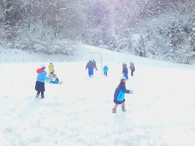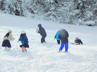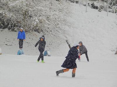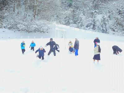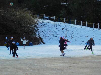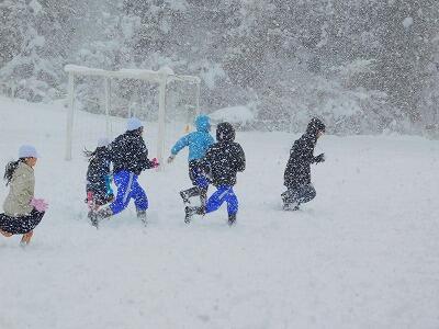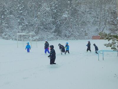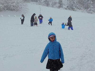 やっぱり休み時間になると、子ども達は出てきて雪合戦の開始です。そして、やはり雪の中に倒れる子!寝転がる子!といます。なんとスカートの女子も!!見ている側が寒くなってきます。本当に子ども達は元気です。