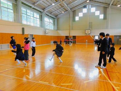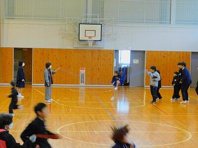 後半は、2班に分かれての長縄対決です。今日は何回跳べたかな?!