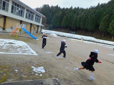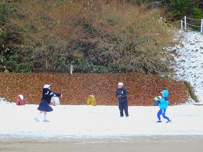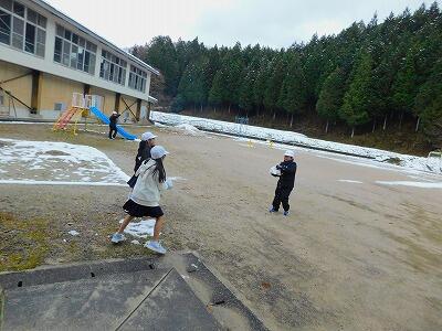 運動場の隅っこにある雪でも、子ども達にとっては格好の遊びアイテムです。休み時間には、運動場に飛び出して、少ない雪で雪合戦をして遊んでいました。