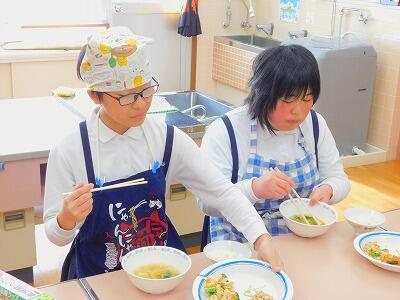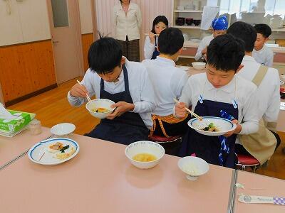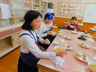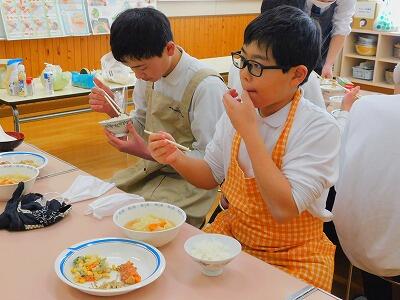 予定の時間内に調理もでき、片付けもすることができました。できあがった料理を食べる子ども達の顔は、みんな満足そうでした。「おいしい〜」と言いながら食べていました。きっと、家でも実践してくれることでしょう。