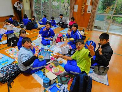 10月31日(金)はあいにくの雨でしたが、この日は楽しみにしていた神代小学校との交流遠足でした。行き先は、「福山市動物園」。そしてその隣の「冨谷ドームランド」の予定でしたが、雨のなので「ふくやまふれ愛ランド」に行きました。道中のバスの中は、ゲームで盛り上がったようです。