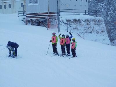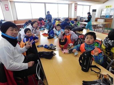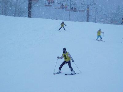 初心者のA組以外は、みんな第3リフトの乗って、スキー場の上まで来ました。結構急な斜面ですが、果敢にチャレンジしました。上級の子ども達は、容易に滑っていましたが、初めて上がった子ども達は転倒しながら滑り降りてきました。それがまた楽しかったようです。