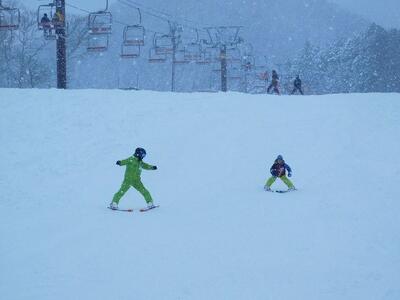 一週間ぶりなので、まずは慣らしから。でも、あっという間にみんなリフトに乗っていました。